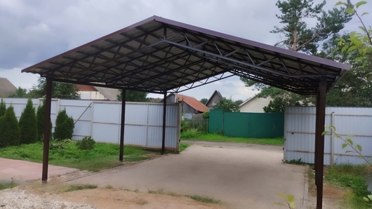 Двускатный автомобильный навес с крышей из профнастила Арт-693